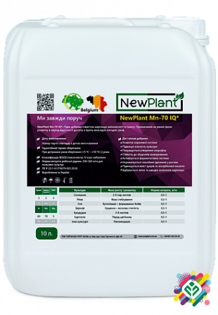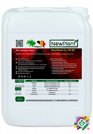 NewPlant Cu-70 IQ - це рідке добриво, яке використовується для коригування нестачі міді, системної профілактики та покращення доступності азоту для рослин. Це добриво має формулювання у вигляді концентрату суспензії. Основні призначення NewPlant Cu-70 IQ включають: - Підвищення засвоєння азоту росл...