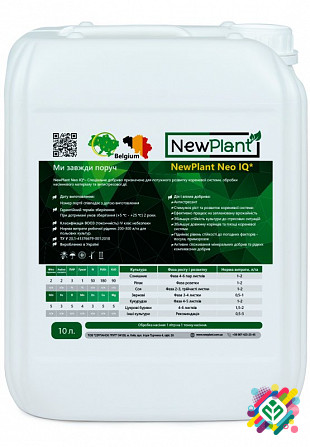 **NewPlant Neo IQ** NewPlant Neo IQ - це добриво, яке призначене для потужного розвитку кореневої системи, обробки насіннєвого матеріалу та антистресової дії. Воно є стимулятором кореневої системи і має формулювання у вигляді концентрату суспензії. **Призначення:** - Діє як антистресант - Стимулює...