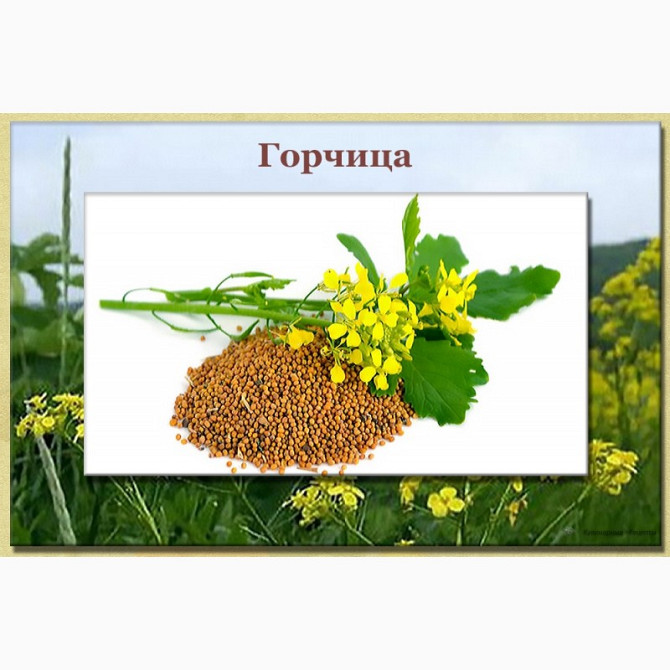 2. **Гірчичниця** (гірчиця) - відома своїми корисними властивостями та гострим смаком. Гірчиця містить антиоксиданти та вітаміни, які сприяють покращенню пищеварення та загальному здоров'ю. Додається до різноманітних страв для підвищення смаку та користі.