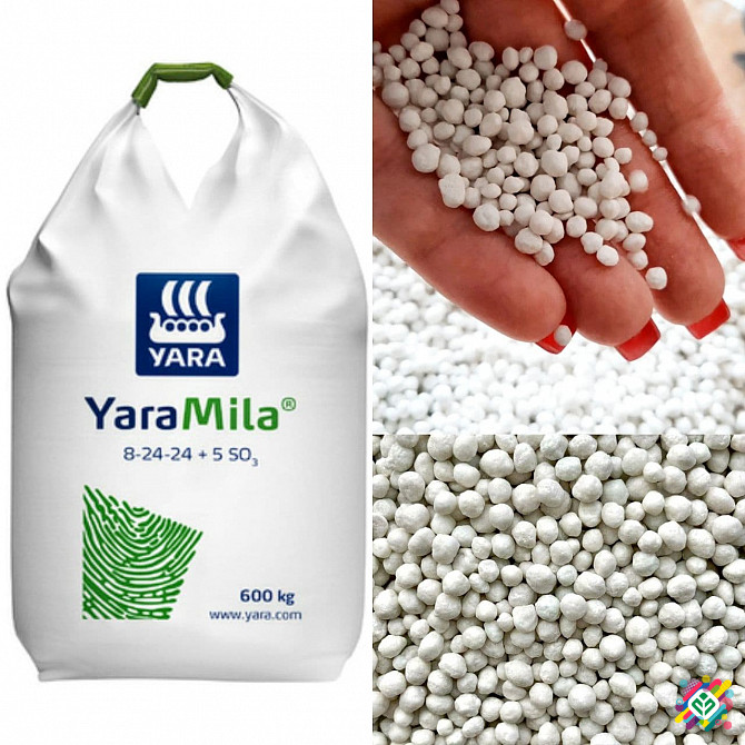 YaraMila NPK 8-24-24 +5SO3 (ЯраМіла NPK 8-24-24 +5SO3) - це комплексне гранульоване добриво для основного внесення та підживлення різних культур. Це добриво містить в кожній гранулі оптимальне співвідношення всіх необхідних для рослини макро- та мікроелементів, що забезпечує їх доступність для росли...