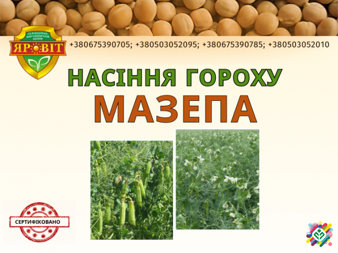 Компанія ТОВ "Полтава-Насіння" пропонує насіння ярого гороху на посів сортів Оплот, Гайдук. Насіння еліта та 1 репродукція. Фасовка мішки або беги.