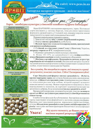 Пропонуємо придбати насіння гороху від виробника з можливістю доставки по всій території України. У нас є в наявності такі сорти насіння гороху: Грегор, Мадонна та Зекон. Ці сорти відомі своєю високою врожайністю, посухостійкістю та стійкістю до захворювань. Сорт Грегор – це німецький жовтий сорт г...