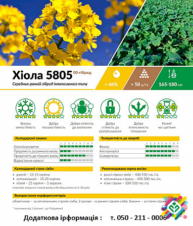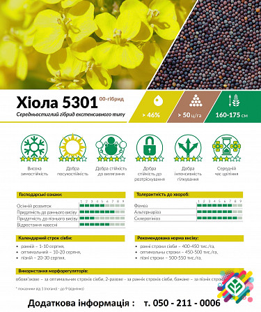 Озимий ріпак гібриду Шелбі: Технічний Опис Озимий ріпак гібриду Шелбі, розроблений ТОВ "РапсОіл", є ранньостиглим сортом з тривалістю вегетації 305-310 днів. Цей гібрид відрізняється високою морозостійкістю та добре розвиненим галуженням, що сприяє високим урожаям. Основні технічні характеристики в...