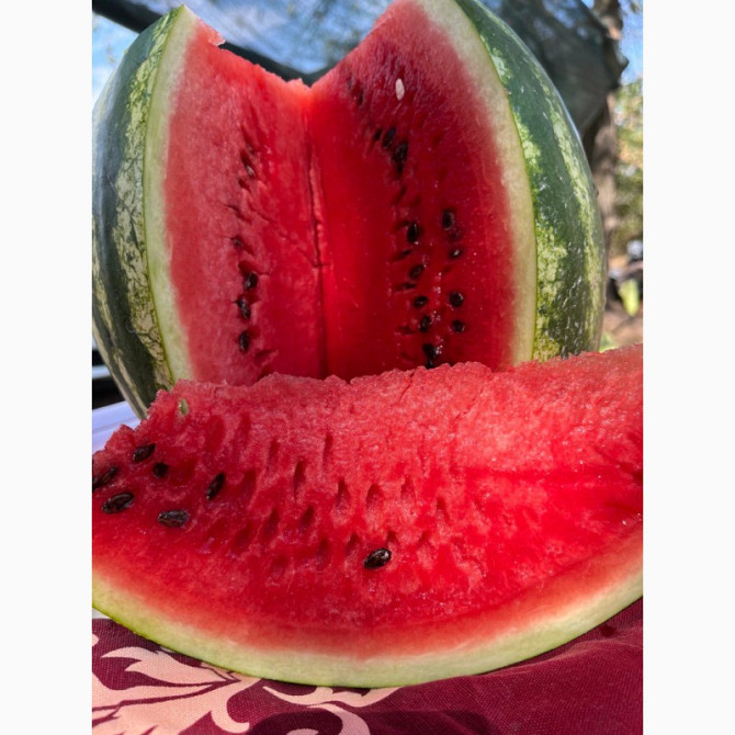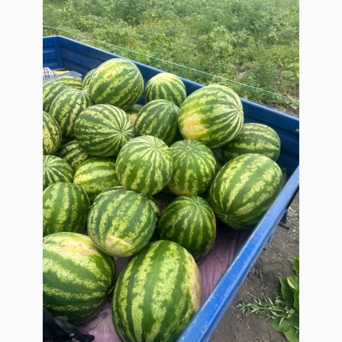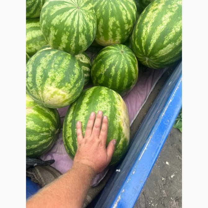 Продаю свіжі, соковиті кавуни з поля сорт Продюсер. Вирощені без використання хімічних добрив, мають чудовий смак та аромат. Розмір і вага різні. Для замовлення або отримання додаткової інформації, будь ласка, зв'яжіться за номером телефону 0686919968