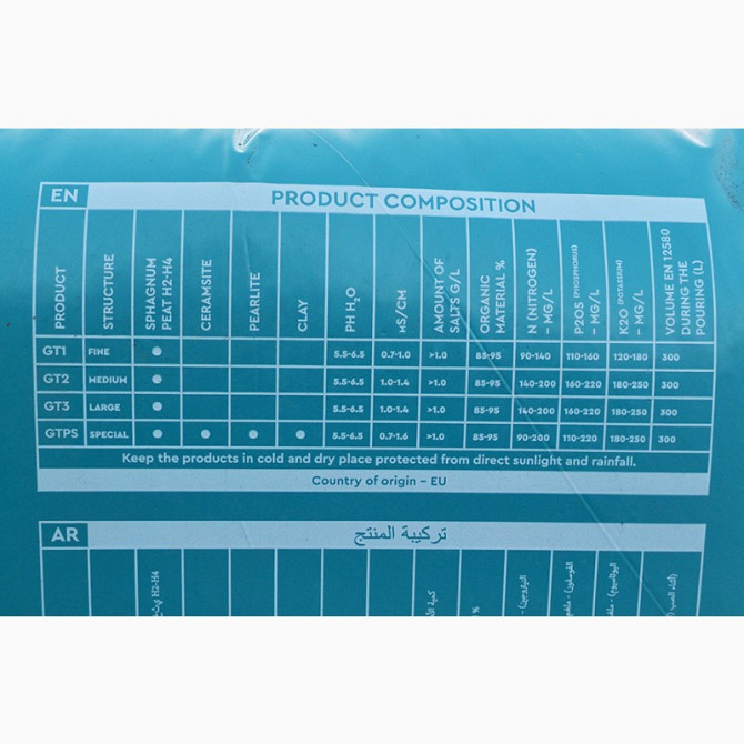**Технічний опис торфу для рослин La Flora та Mikskaar** La Flora та Mikskaar пропонують високоякісний торф для використання у вирощуванні лохини, квітів, розсади овочевих та декоративних рослин. Продукція доступна для самовивозу, доставки перевізником та поштовими службами, без можливості накладен...