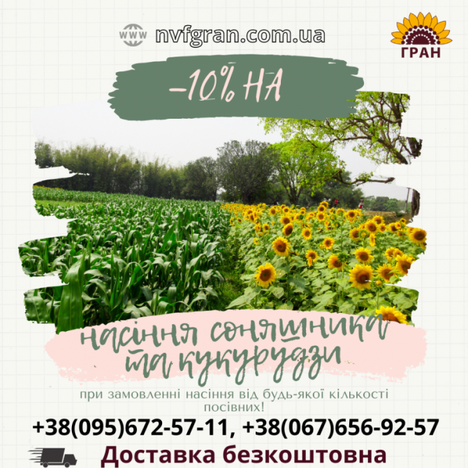 **НАСІННЄВА КОМПАНІЯ "ГРАН": ГІБРИДИ СОНЯШНИКА ТА КУКУРУДЗИ** Насіннєва компанія "Гран" є провідним виробником посівного матеріалу соняшнику та кукурудзи в Україні. Наші гібриди є результатом довгого вивчення та селекції, що дозволяє досягати високих показників врожайності та якості продукції. **С...