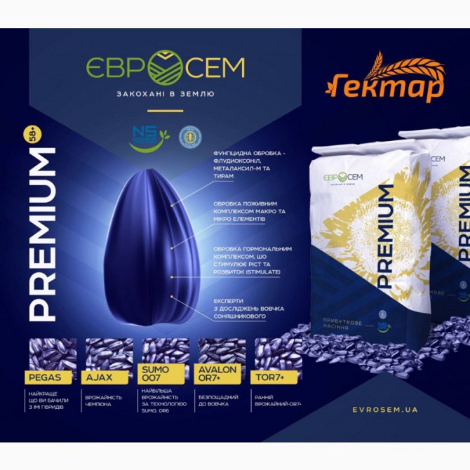 **Гібрид соняшнику сербської селекції "Тор" (НС 7749)** Ціна: - Оптимальна - 85 доларів з ПДВ за 1 п.е. - Преміум - 106 доларів з ПДВ за 1 п.е. Новий класичний гібрид соняшнику сербської селекції "Тор" (НС 7749) відзначається високою врожайністю і стійкістю до 7+ штамів фузаріозу. Характеристики:...