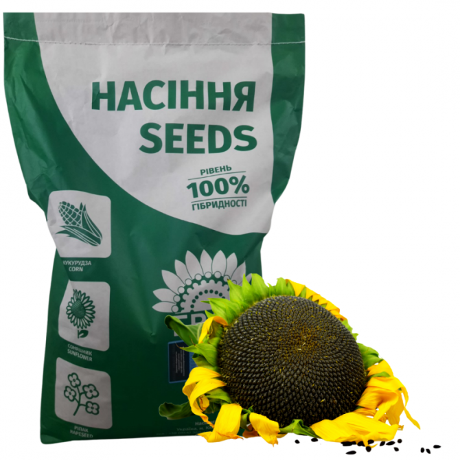 Сорт: Раннеспелый гібрид соняшнику Характеристики: - Група спелости: Раннеспелый - Вегетаційний період: 102-105 днів - Висота рослин: 160-175 см - Діаметр квіткоструминки: 17-19 см - Маса 1000 насінин: 52-58 г - Вміст олії: 48-51% - Потенційний врожай: 40-45 ц/га - Стійкість до посухи: 8 - Стійкіст...