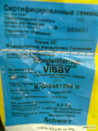 Ріпак озимий БЛЕКСТОУН ІМІ: Новітні гібриди озимого ріпаку безерукових (00-тип) сортів, випущені у 2015 році, є результатом роботи відомого оригінатора ТОВ «Всеукраїнський науковий інститут селекції». Цей ранньостиглий гібрид (295-300 днів) відрізняється підвищеною посухостійкістю та стійкістю до по...