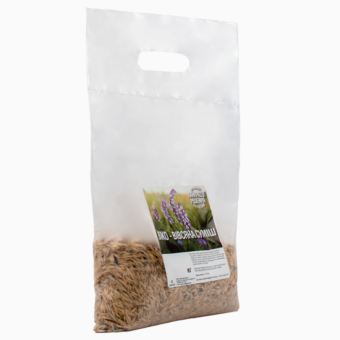 Суміш для посіву поля складається з двох видів насіння: віка яра (20%) та овес посівний (80%). Ця однорічна суміш бобово-злакових рослин широко використовується у сільському господарстві як зелене добриво та сидерат. Вона сприяє покращенню структури ґрунту і збагаченню його фосфором, азотом та гумус...