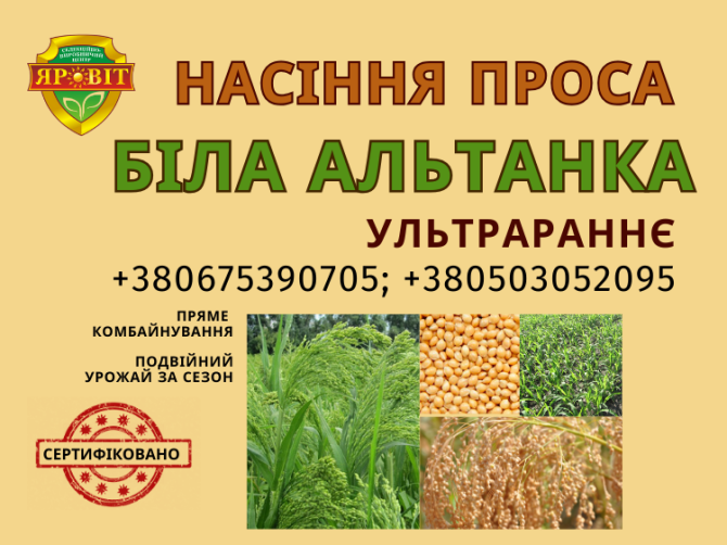 Закуповуємо просо (жовте та червоне)! Наша компанія спеціалізується на закупівлі якісного проса з метою подальшого його використання в галузі тваринництва та переробки. Ми запропонуємо вам вигідні умови співпраці та забезпечимо контракт на постачання проса для вашого майбутнього врожаю. Жовте та че...