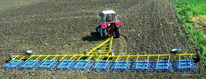 Універсальний агрегат призначений для використання як у ранній передпосівній обробці грунту весною, так і у пізній осінній обробці після збирання врожаю. Робочими секціями агрегата є ланцюгові вали, розташовані на крилах агрегата, які обертаються за допомогою підшипникових вузлів по краях. Робочими ...