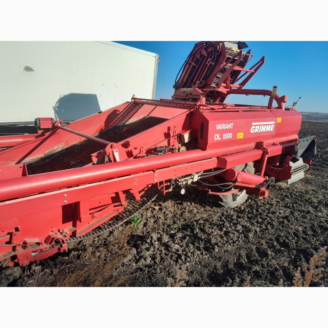 **Картоплезбиральний комбайн Grimme DL 1500** Картоплезбиральний комбайн Grimme DL 1500 є високоефективним засобом для збору картоплі, моркви, буряка та цибулі. Цей комбайн відомий своєю надійністю і продуктивністю, що робить його ідеальним вибором для сільськогосподарських господарств та фермерськ...