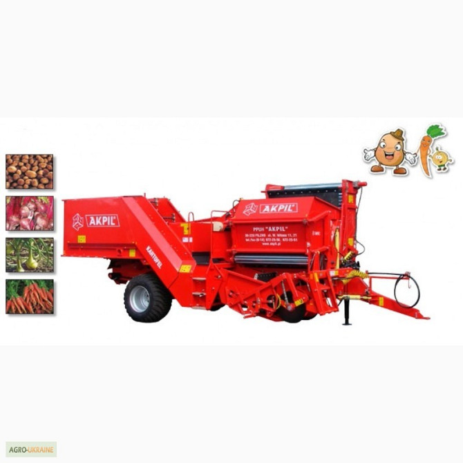 Комбайн для збирання картоплі AKPIL KARTOFFEL з однорядною конфігурацією, з можливістю викачування цибулі та моркви (за додаткову плату). Технічні характеристики: - Об'єм приймального бункера для картоплі: 3500 кг (опція: 5000 кг) - Об'єм сортувального бункера: 500-700 кг - Ширина міжряддя: 60-90 ...