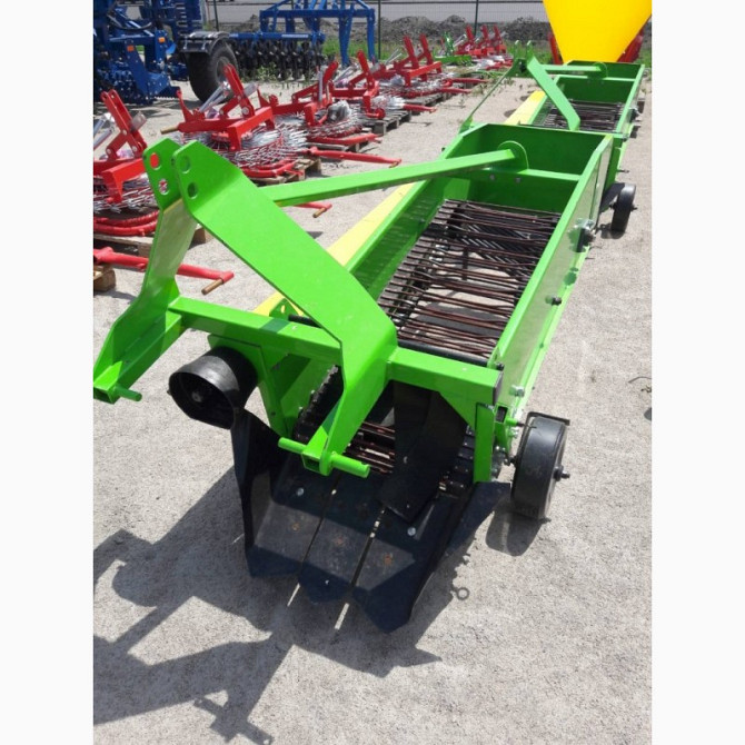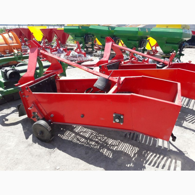 Новий продукт на ринку сільськогосподарської техніки - однорядна транспортерна картоплекопалка. Цей пристрій спроектований для ефективного збирання картоплі на полі. Технічні характеристики: - Ширина захвату: 1 метр - Ємність бункера: 500 кг - Швидкість руху: 2-4 км/год - Потужність двигуна: 10 кВ...