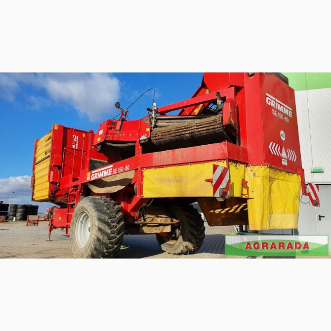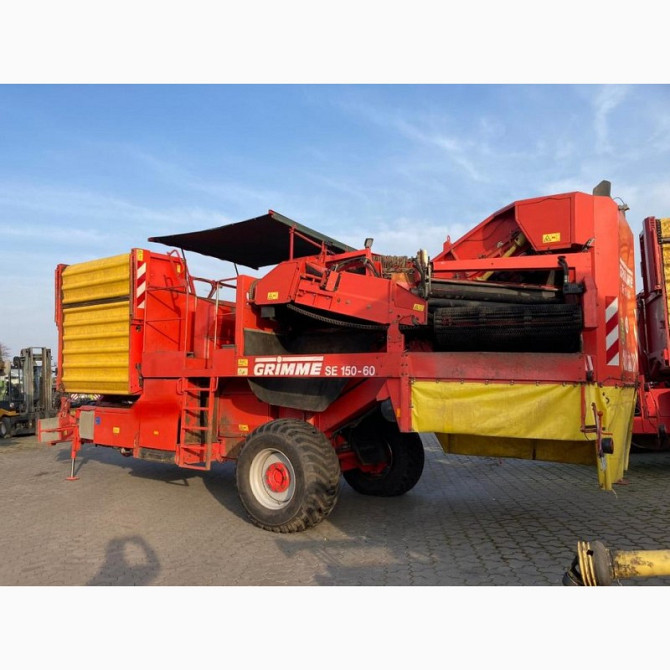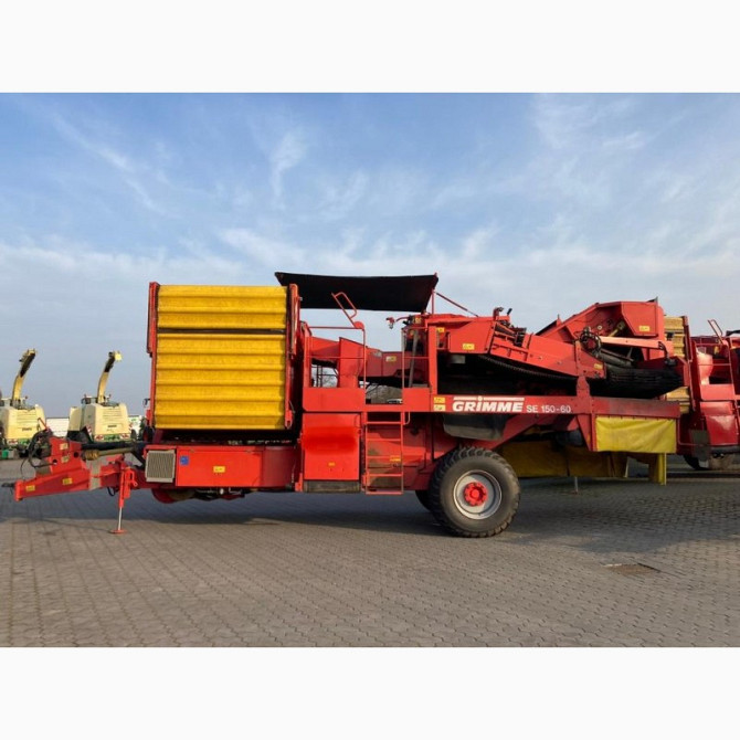 **Технічний опис картоплезбирального комбайну GRIMME SE 150-60 UB** Пропонується до продажу картоплезбиральний комбайн GRIMME SE 150-60 UB, випущений у 2008 році. Цей комбайн обладнаний бункером на 7,5 тонн, що забезпечує ефективне збирання картоплі. Схема копання складає 2 х 75 см, що дозволяє шви...
