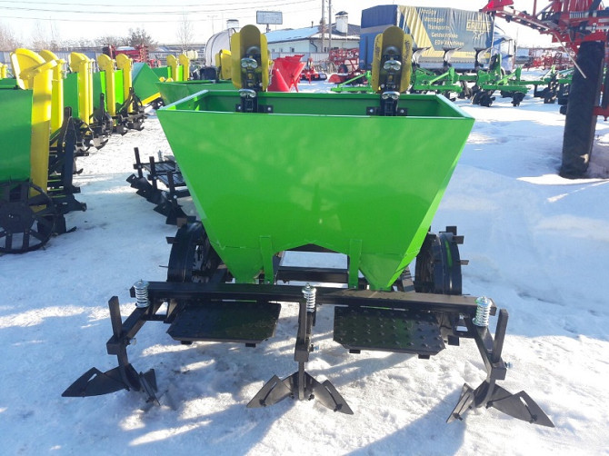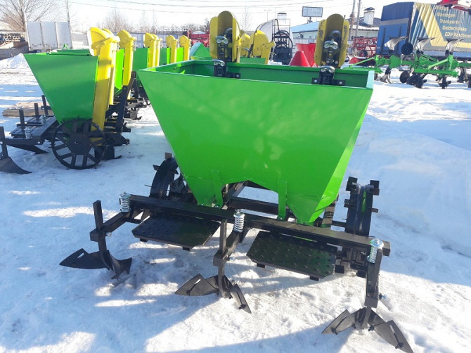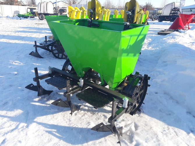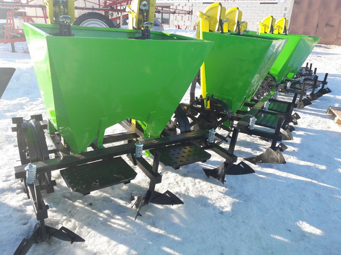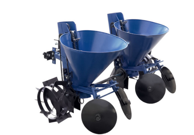 Картофелесажалка 2-рядкова для мототрактора КС14 із бункером для удобрень (КС14) Картофелесажалка КС14 призначена для використання з мототракторами, що мають одно точкове зчеплення. Цей продукт є незамінним помічником у вирощуванні картоплі, забезпечуючи швидке та ефективне сіювання. Особливості к...