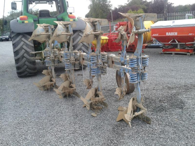 **Технічний опис плуга Б/У Lemken-Лемкен ЕврОпал - 4+1 корпусов N 100** Плуг Lemken-Лемкен ЕврОпал є відмінним знаряддям для обробки ґрунту, яке відзначається високою якістю та надійністю. Цей плуг оснащений ленточними отвалами BS42 та опорним колесом розміром 195 R15, що забезпечує стабільність пі...
