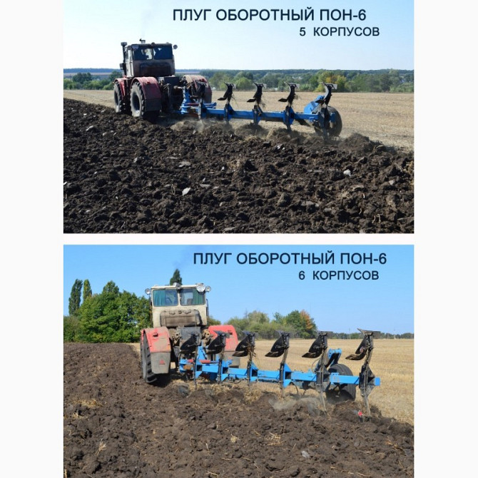 Плуги оборотні навісні ПОН-5П з регульованою шириною захоплення призначені для гладкої плугівлі на глибину до 30 см в ґрунтах, що не містять каменів, бруківки та інших включень, з удельним опором до 0,09 МПа. Гладка вспашка дозволяє забезпечити обробіток ґрунту без греблених смуг та розвальних бороз...
