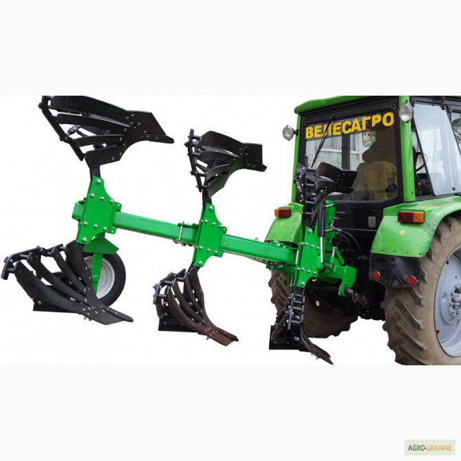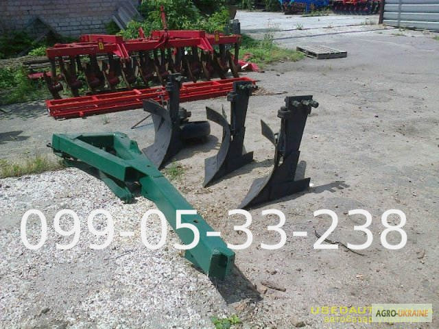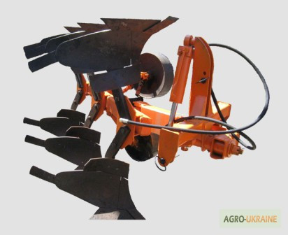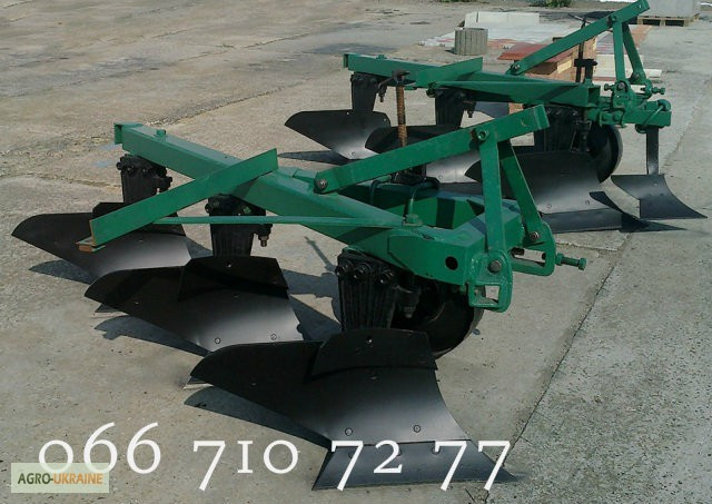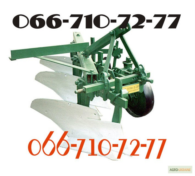 **Оборотний навісний плуг ПОН-3-35** Технічні характеристики: - Тип агрегата: навісний - Робоча швидкість (км/год): 4 — 8 - Розрахункова продуктивність за 1 годину основного часу: 0.34 — 0.96 - Ширина захоплення (м): 0.84 ‒ 1.2 - Ширина захоплення корпуса (мм): 280/320/360/400 - Відстань між корпус...