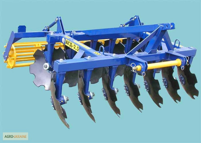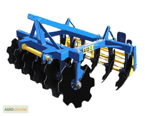 Дискова борона АГД-2.1 (дископлуг) призначена для обробки ущільнених ґрунтів різного механічного складу з подрібненням та внесенням рослинних залишків у ґрунт. Агрегат розрахований на роботу з тракторами класу 14 кН (1,4 тс), обладнаними центральною та продольними тягами, трьохточковою навісною сист...