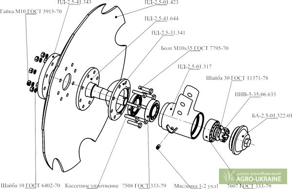 ## Технічна характеристика Плуга ПД ### ПД-2.2 - **Розрахункова продуктивність:** 1,5-2,2 га/год - **Ширина захоплення:** 2,2 м - **Маса плуга:** 1050 кг - **Глибина обробки:** 10-20 см - **Робоча швидкість руху:** 7-10 км/год - **Кількість робочих органів:** 12 шт - **Діаметр диска:** 640±10 мм - ...