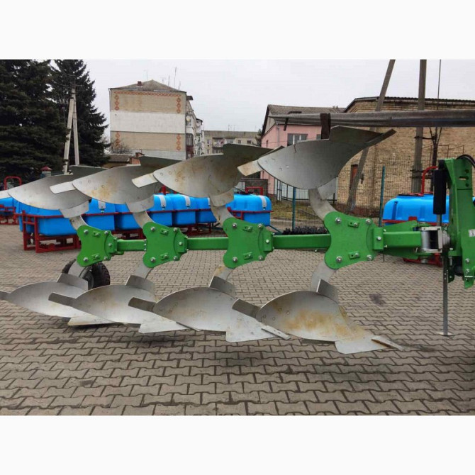 Кількість корпусів: 4 шт. Потужність трактора: від 110 к.с. Тип плуга: навісний механічний. Тип відвалу плуга: полосовий. Технічний опис: Плуг з чотирма корпусами призначений для обробки ґрунту у сільському господарстві. Він має механічний пристрій для навішування на трактор та полосовий тип відвал...