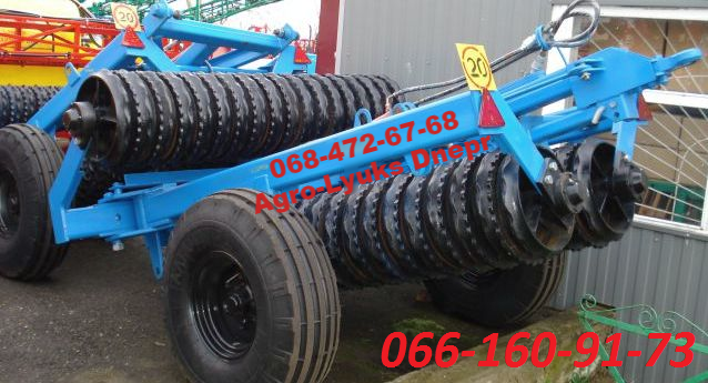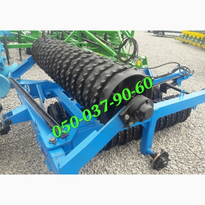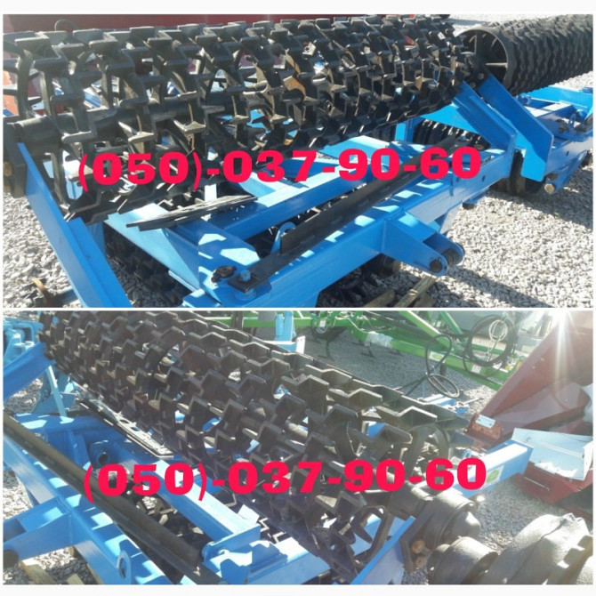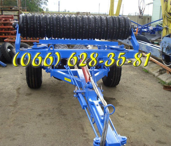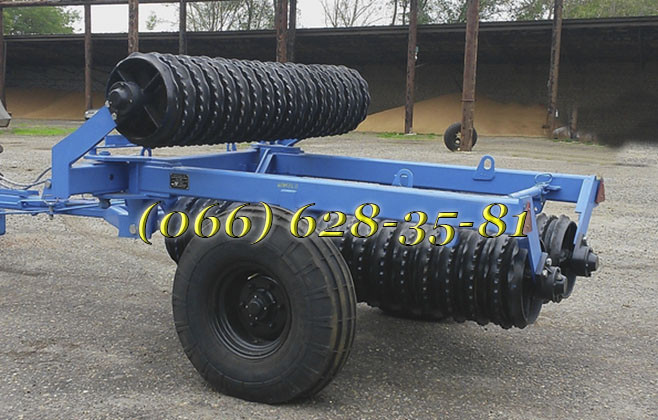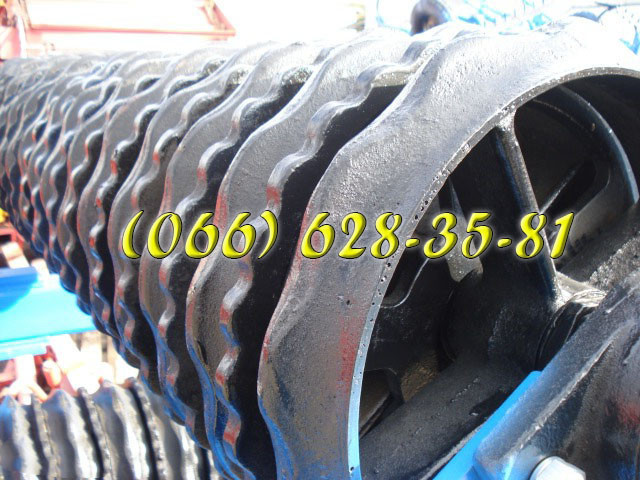 Характеристики катка КЗК-6: - Ширина захвату: 6 метрів - Діаметр кільця: 520 мм - Кільця виготовлені зі сталі - Вага: 3300 кг Каток КЗК-6 оснащений гідравлічною системою, що дозволяє йому перебувати в робочому положенні. У транспортному положенні каток може переміщатися по дорогах загального корист...