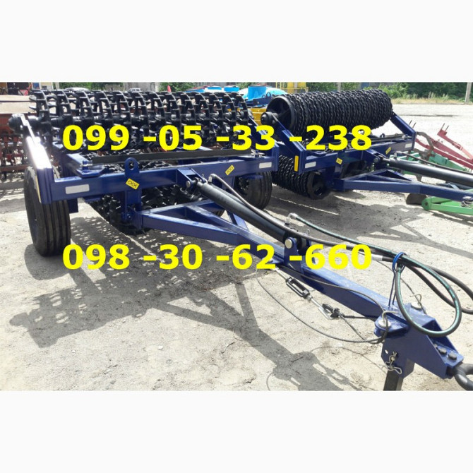 **Каток зубчасто-колісний КЗК-6-01** Каток зубчасто-колісний КЗК-6-01 є напівпричіпним гідрофікованим агрегатом з шириною захоплення 6 метрів, який використовується для обробки полів. Цей каток володіє надійною конструкцією, що поєднує в собі якість та ефективність обробки ґрунту. **Технічні харак...