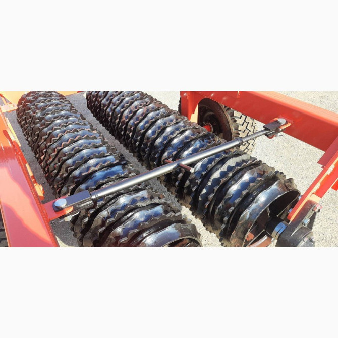 Технічні характеристики: - Ширина захвату: 600 см - Висота ножів: 120 мм - Продуктивність: до 7,2 га/год - Швидкісний режим роботи: досягає 12 км/год - Швидкісний транспортний режим: досягає 20 км/год - Діаметр катка з ножами: 46 см - Діаметр вала катка: 6 см - Вага: 2200 кг, з водою - 2500 кг - Пр...