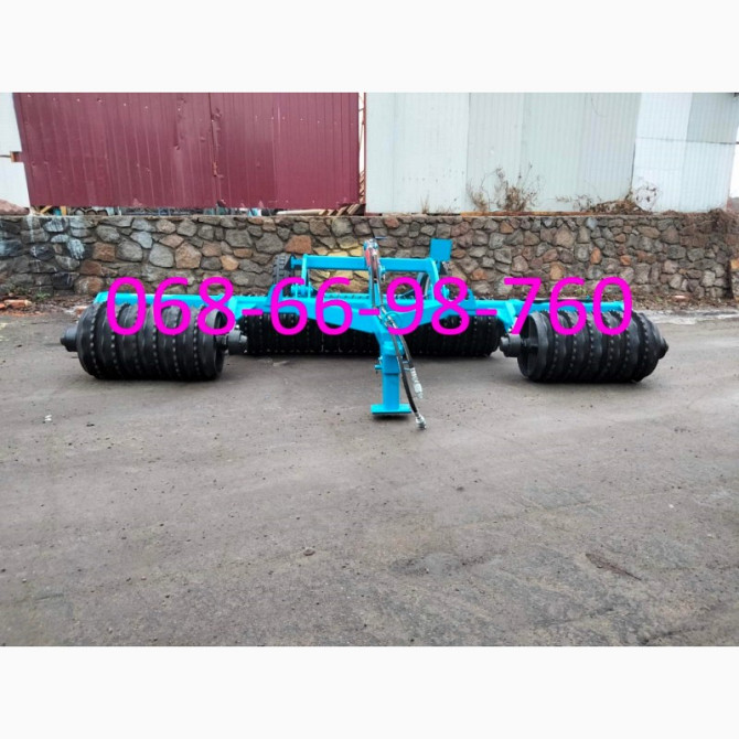 Продам шпоровий каток КЗК-6, призначений для передпосівної та післяпосівної обробки ґрунту, забезпечує вирівнювання ґрунту та подрібнення грудинок. Маса досягає 3,35 тонни. Можливість застосування при вологості ґрунту 25%. Має напівпричіпний тип. Ширина захоплення — 6 метрів. Робочий орган — кільцев...