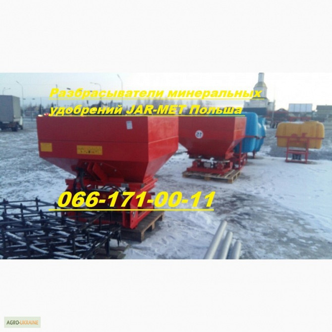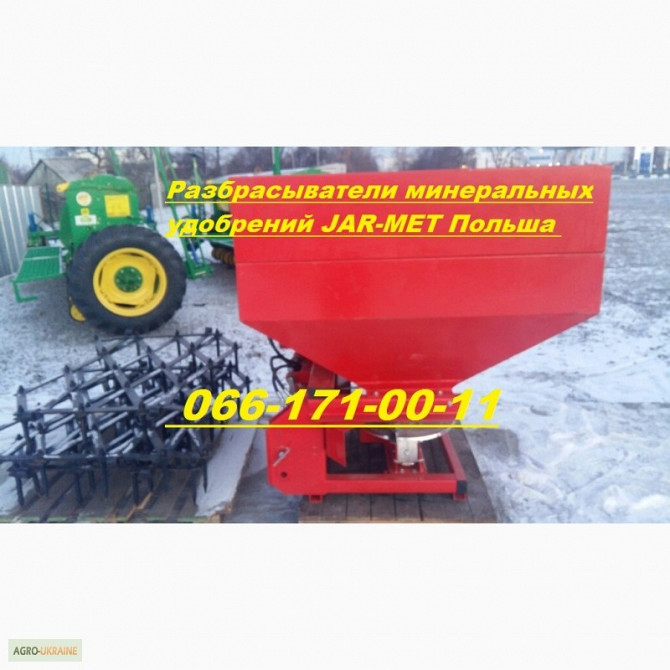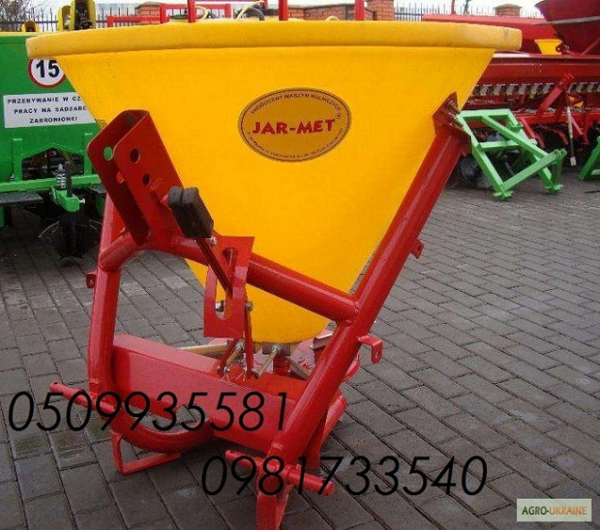 Розкидач міндобрив півського виробництва Jar-Met на 500 кг. Також в наявності маємо: оприскувач, розкидач міндобрив, косарка роторна, граблі ворошилки, дискова борона, плуг, ковзанка, культиватор міжрядний, грунтофреза, картоплесаджалка, картоплепачка, мульчувач, подрібнювач, глибокорозпушувач, коса...