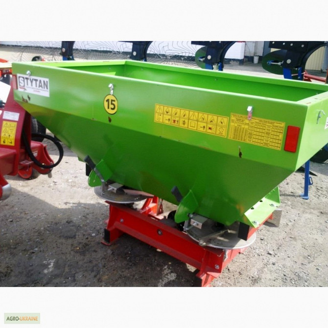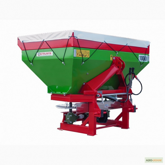 Навісний розкидач мінеральних гранульованих та кристалізованих добрив. Виробник Польща - StrumykМодель Tytan 1000-SЄмкість 1000 літрів Ширина розкидання до 12 - 21 м. (2 x 2)із нержавійкиМатеріал лійки - метал порошкова фарба.Гідравлічне управління розкиданням.Тентта карданний вал за доплатуДоставка...