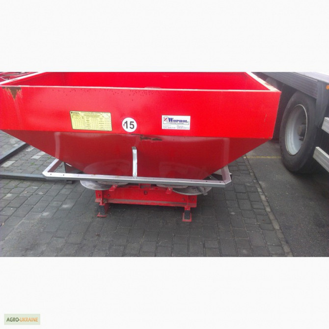 Розкидач добрив на 1000 кг фірми Woprol (польша)Комплектація з карданним валом! Машини характеризуються високою надійністю і, що також важливо рівномірністю та точним регулюванням висіву. Розсіювальні диски виготовлені з нержавіючої сталі і оснащені двома парами лопатей, що дозволяють розсіювати доб...