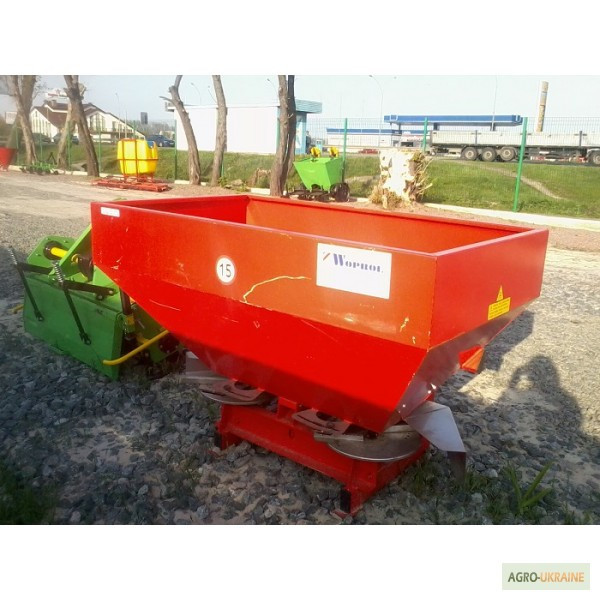 РУМ НАВІСНИЙ ОБ'ЄМОМ НА 1000 Л, ШИРИНА РОЗСІЮВАННЯ 12-24 МТ, 2-РОЗСІЮЧИДИСКИ, 6 ВІДПОВІДІВ НА ДИСКУ, 540 об/хв, робоча швидкість 4-13 км/год, потужністьтракторів0, /1500кг/га. З карданом.