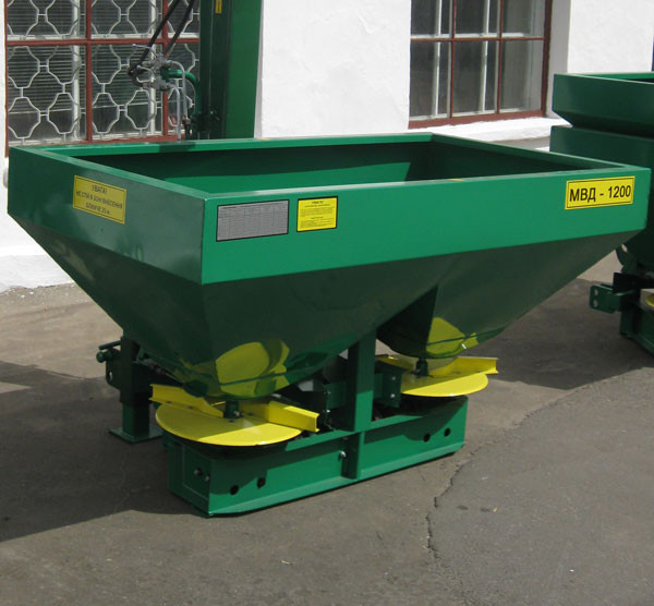 МВС-1200 Машини МВС-1200 призначені для поверхневого внесення твердих мінеральних добрив у гранульованому та кристалічному вигляді на полях та в садах, а також для внесення піщано-соляних сумішей. Можуть використовуватися для посіву сидератів (насіння зернових, зернобобових культур і трав) на полях ...