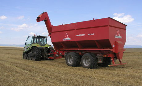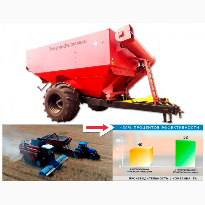 Призначений для прийому зерна під час уборки зернових та його транспортування на край поля для подальшого перевезення в автопоїзд-зерновоз. Процес розвантаження зерна з комбайна не вимагає зупинки та забезпечує неперервність збору урожаю. Технічні характеристики: - Тип: причіпний - Об'єм кузова: 30...