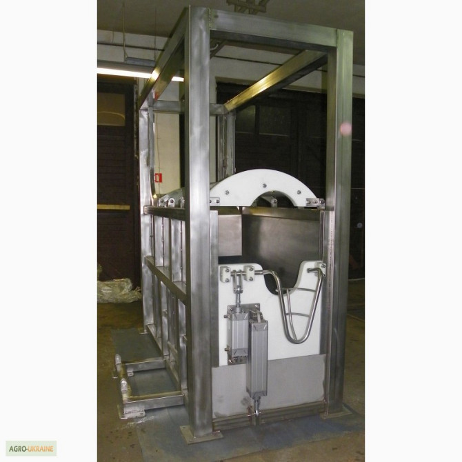 Бокс глушіння призначений для непорушення великої рогатої худоби перед вбивством. Він повністю виготовлений з нержавіючої сталі. **Конструкція та принцип роботи:** - Пневматичне управління. - Бокс повністю ущільнений. - Нержавіюча сталь. **Технічні характеристики:** - Підключення: Стиснений повітр...