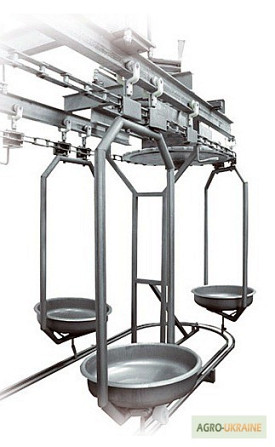 Транспортер конвеєр з піддонами для субпродуктів призначений для транспортування кишок та субпродуктів з поста нутрування на лінію ветеринара на виробничій лінії. Після огляду ветеринаром, комплект кишок потрапляє в кишковий цех, а субпродукти, після перевішування на візки, направляються в відповідн...
