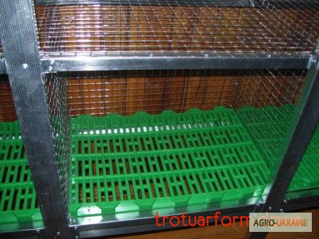 Найкраща альтернатива решітчастим і сітчастим підлогам для кроликів! Міцні та гігієнічні підлоги-пастки з пластику призначені для великих порід кроликів та молодняка. Вони запобігають виникненню пододерматиту, відпорстовують пошкодження від зубів, легко миються та дезинфікуються. Технічна інформаці...