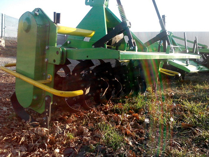 Польова тракторна фреза 2.0 м від компанії Bomet PL - це навісна грунтофреза, призначена для розпушення і перемішування шарів грунту без його обертання. Цей пристрій також здатний розламувати брили, підрізати стебла коріння бур'янів, що дозволяє швидко проводити остаточну підготовку полів після довг...