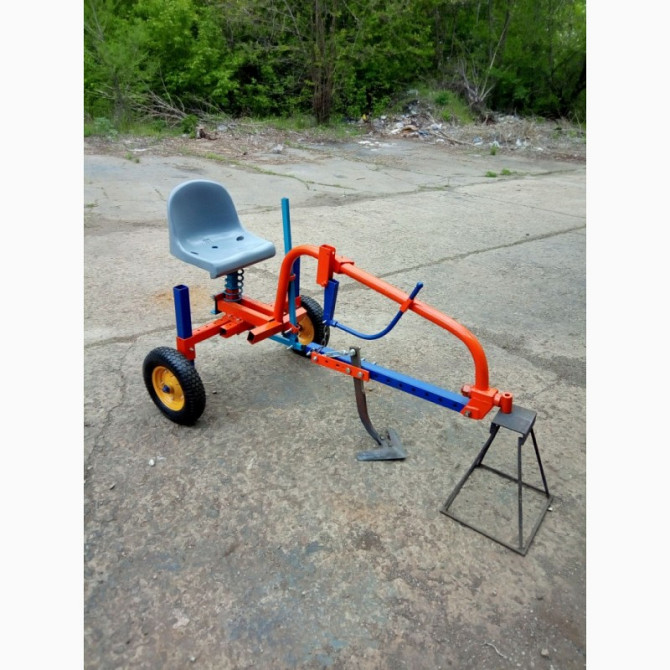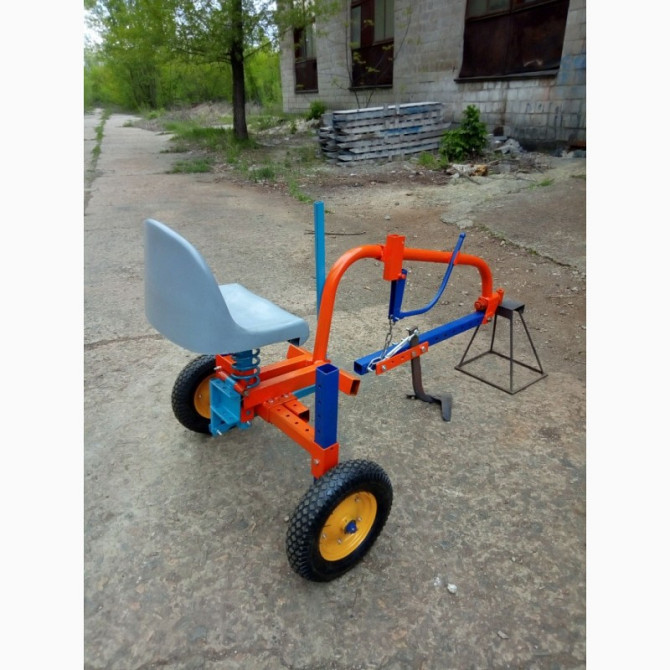 Адаптер для мотоблоку з переднім кріпленням для водія, а також передбачена можливість кріплення обладнання ззаду адаптера. Пневматичні колеса та підпружинене сидіння забезпечать комфорт під час роботи. Технічні характеристики: - Матеріал: сталева конструкція з покриттям проти корозії - Розміри: 120...