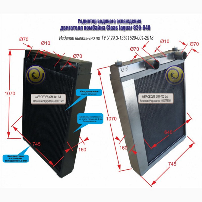 Радіатор водяний для комбайна Claas Jaguar 840, виготовлений ООО фірмою «Каскад», є аналогом радіатора, що широко використовується на спецтехніці. Цей радіатор підходить для систем водяного охолодження двигунів MERCEDES OM 402 LA та MERCEDES OM 441 LA. Каталожні номери: 0000773992 та 000773451 відпо...