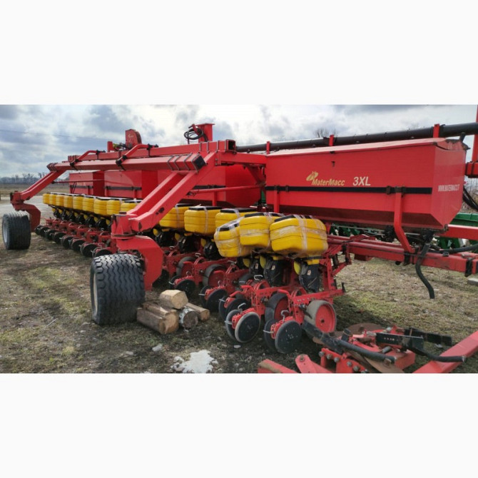 **Продаж в срочному порядку: Сівалка Matermacc3 XL з вакуумними баками для мінеральних добрив** Пропонується до продажу сівалка Matermacc3 XL, яка працювала всього два сезони та має наробітку 3200 га. Ця вакуумна сівалка складається з 12 рядів, міжряддя можна налаштувати на відстані 49 см, 55 см, 6...