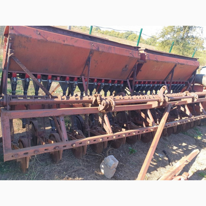 **Сеялка зернова СЗ-3,6 вживана: технічний опис та стан** Сеялка зернова СЗ-3,6 є продуктом радянського виробництва, призначеним для ефективного висіву зернових культур. **Технічні характеристики:** - Модель: СЗ-3,6 - Стан: хороший - Рама: ціла, не ремонтована - Бачки: не гнилі - Сошники: у гарно...