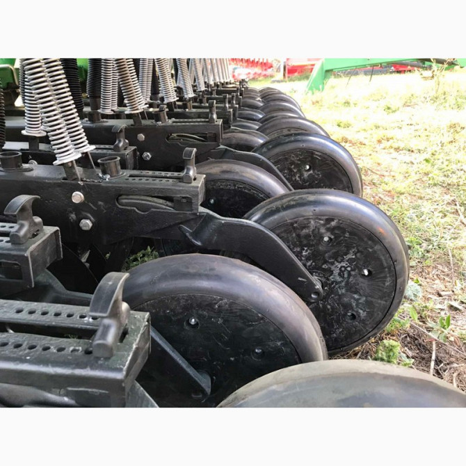 Міжсекційне розташування опорно-привідних коліс дозволяє досягати необхідної глибини закладання насіння та добрив і уникати просівів. Сіялка мінімізує ризик поломок під час посіву і максимально покращує якість висіву. Вона оснащена двоконтурним приводом секцій через шестигранний вал, гідрофікованою ...