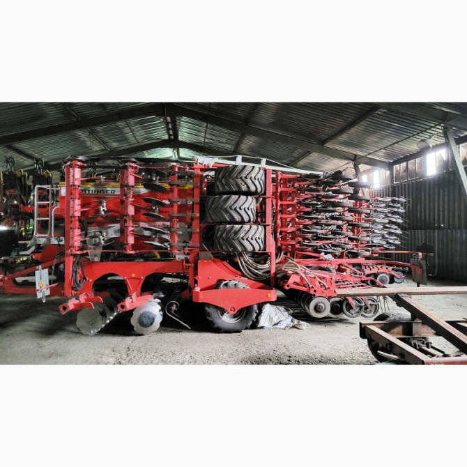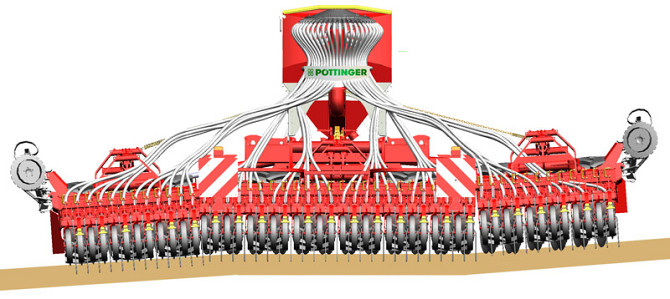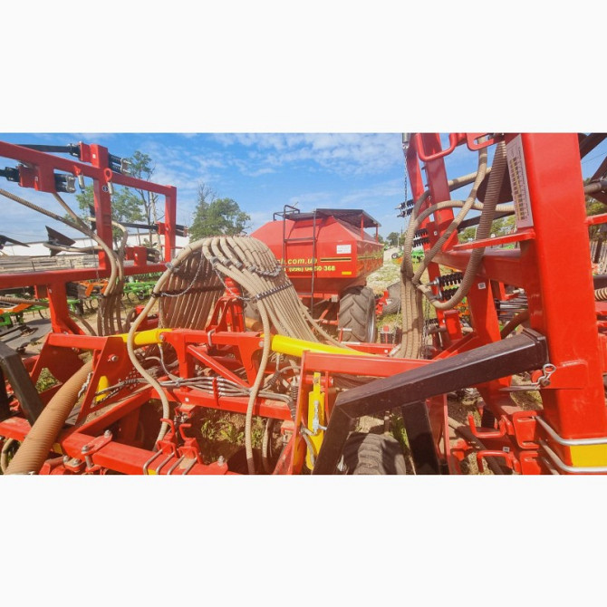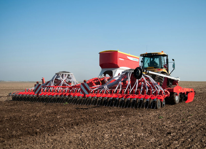 Модель: TERRASEM C8 Технічні характеристики: - Робоча ширина: 8 метрів - Транспортна ширина: 3 метри - Транспортна висота: 3,98 метра - Відстань між сошниками: 12,5 сантиметрів - Кількість сошників: 64 штуки - Тиск сошників на ґрунт: 40-120 кілограм - Діаметр ущільнюючого котка: 380 міліметрів - Об...