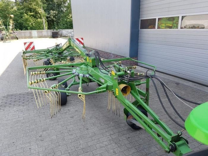 Граблі (валкоформувач) Krone Swadro 710/26 виробництва 2008 року є відмінним вибором для сільськогосподарських робітників, які шукають надійний і ефективний інструмент для виконання робіт з сінокошіння та сінозбирання. Технічні характеристики включають: - Робоча ширина захвату: 6,20 метрів, що дозв...