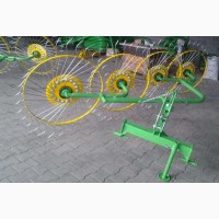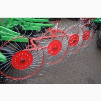 Граблі-сінокосарки з п'ятьма колесами виконують одночасно кілька функцій – збирання трав'яної маси (включаючи солому) з коси в снопи в заданій ширині, розгортання її в снопах, а також перекочування снопів, потрапивших під дощ. Збільшена ширина захвату та оптимальна робоча швидкість забезпечують висо...