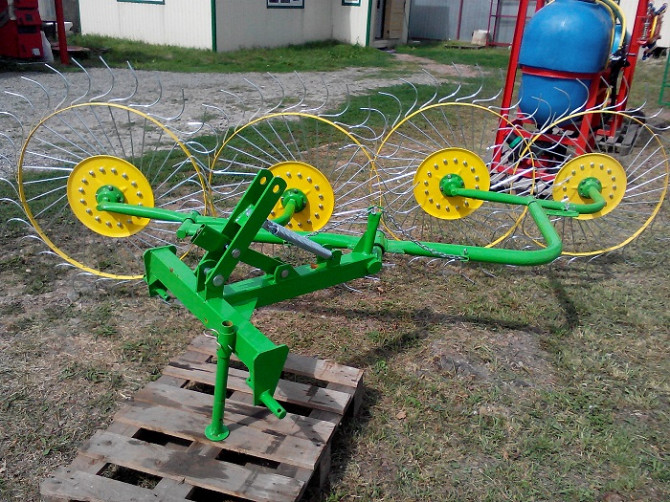 Грабли-ворошилка "Сонечко" 4-х колісна (Україна) Грабли-ворошилка "Сонечко" є високоефективним засобом для сільськогосподарських робіт і використовується для вирівнювання та обробки ґрунту. Ця технічна новинка від українського виробника поєднує в собі функції граблів та ворощілки, що забезпечує шви...